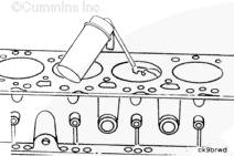 斷開蓄電池。參考原始設備制造商 (OEM) 維修手冊。排放機油。參考第 7 節中的步驟 007-037。拆下油底殼和密封墊。參考第 7 節中的步驟 007-025。排放冷卻液。參考第 8 節中的步驟 008-018。拆下部件蓋。參考 第 3 節中的步驟 003-030。拆下缸蓋。參考第 2 節中的步驟 002-004。