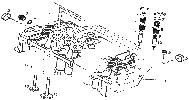 1.缸蓋 2.水套堵 3.螺塞 4.密封墊 5搖臂堵頭 6.氣門彈簧鎖片 7.彈簧座 8.氣門彈簧 9.o型圈 10.氣門導(dǎo)管 11.進(jìn)氣門座 12.進(jìn)氣門 13.排氣門 14.排氣門座