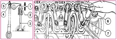 調整氣門間隙之前,停機30分鐘,油溫要低于80℃。用塞尺6檢查2、3之間的間隙1,塞尺塞入后要有輕度 磨擦,正確的氣門間隙;進氣門:0.3mm,排氣門:0.5mm,(每次更換氣缸墊后,氣門間隙增加0.1mm,運轉 50-150小時后重新調整)。按如下步驟調整氣門間隙: -松開鎖母4。用改錐7擰螺栓5,上緊鎖母4,得到正確的氣門間隙。 檢查、調查其他各缸的氣門間隙。裝好氣門室蓋(如需要,更換墊圈)。