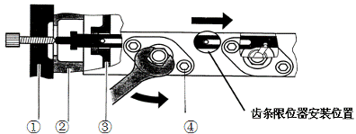 1.專用工具,2.外殼,3.齒條導(dǎo)套,4.單體泵固螺栓。