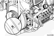 將康明斯ISX15 CM2250發(fā)動機減振器上的A標記與齒輪室蓋上的正時標記對齊。