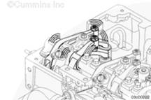 當康明斯ISX15 CM2250發動機搖臂和制動器搖臂都松動時,兩個氣門都關閉。如果兩個氣門沒有關閉,旋轉壓縮機驅動齒輪一整圈,并使前減振器上的 A 標記再次對準指示箭頭。