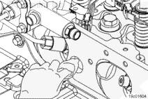 注: 安裝噴油器導線,使它們不與搖臂或發動機制動殼體產生干涉。如果搖臂能夠接觸到噴油器線束,會摩擦導線絕緣層,并導致噴油器電路故障代碼。