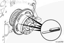 嘗試在四個位置(相距約 90 度),在曲軸齒輪和轉速信號輪之間插入 [0.25 mm] 0.010-英寸的塞尺來檢查安裝。