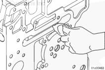 拆卸康明斯ISX15 CM2250發(fā)動(dòng)機(jī)缸體油道內(nèi)的保護(hù)塞。