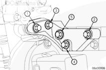 按圖示順序擰緊燃油泵支架和空氣壓縮機(jī)上的螺釘。