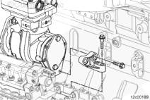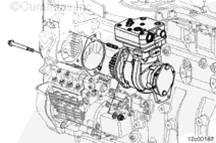 將康明斯ISX15 CM2250發(fā)動機(jī)空氣壓縮機(jī)安裝托架和四條螺釘裝到空氣壓縮機(jī)下面的缸體上。開始擰緊全部四條螺釘。
