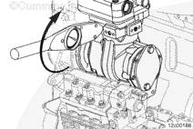 將康明斯ISX15 CM2250發(fā)動機(jī)空氣壓縮機(jī)、密封墊、安裝螺母和螺釘安裝到前齒輪室上。