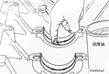 在康明斯B3.9、B4.5、B4.5 RGT 和 B5.9 發動機主軸承的曲軸側和止推軸承表面上涂抹一層裝配潤滑劑(零件號 3163087)。