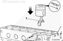 對齊活塞頂部的 “Front”(前)標記和/或箭頭,使其指向發動機前部。