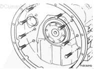 注: 安裝飛輪殼之前,應(yīng)確保所有定位銷(xiāo)位于拆卸飛輪殼時(shí)的相同位置。