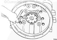 注: 由于 SAE 型飛輪殼體不同,安裝螺栓的位置可能不同于圖示位置。圖示順序適用于所有型號(hào)的飛輪殼體。