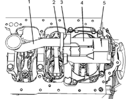 3卸下螺栓(5)。將Perkins1106A/C發動機機油泵組件(4)從Perkins1106A/C發動機缸體上卸下。