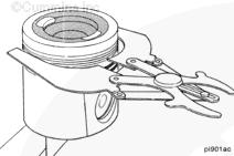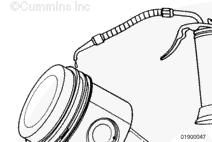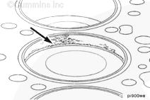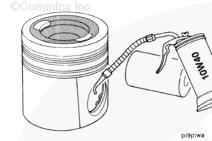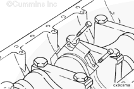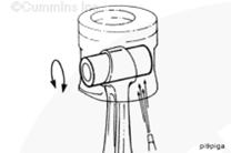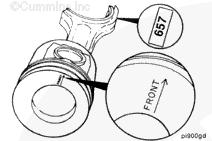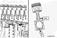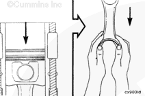 康明斯ISB5.9 G CM2180發(fā)動機活塞和連桿總成 概述 TOC 與康明斯ISB5.9 G CM2180發(fā)動機功率有關(guān)的問題有很多,包括機油消耗過大、冒煙、竄氣和性能不良,它們可能由活塞環(huán)與缸壁之間的密封不良引起。A 竄氣測量值有助于發(fā)現(xiàn)問題。參考第 14 節(jié)中的步驟 014-002。 連接康明斯ISB5.9 G CM2180發(fā)動機活塞和連桿的活塞銷采用自由浮動的中空活塞銷。已經(jīng)完成從活塞冷卻噴嘴通過滯留噴霧的方法潤滑銷和軸頸。 康明斯ISB5.9 G CM2180發(fā)動機連桿的活塞銷端帶有切削角度,以增加軸承受力面積。連桿端頭裝有青銅襯套。 準(zhǔn)備步驟 警告 為了減小人身傷害的可能性,應(yīng)避免皮膚直接接觸熱機油。 警告 冷卻液有毒。避免兒童與寵物接觸冷卻液。如果不再繼續(xù)使用,應(yīng)按照當(dāng)?shù)丨h(huán)保法規(guī)進(jìn)行處理。 排放機油。參考第 7 節(jié)中的步驟 007-025。 拆下油底殼和密封墊。參考第 7 節(jié)中的步驟 007-025。 排放冷卻液。參考第 8 節(jié)中的步驟 008-018。 拆下缸蓋。參考第 2 節(jié)中的步驟 002-004。 拆卸 TOC 根據(jù)康明斯ISB5.9 G CM2180發(fā)動機氣缸位置標(biāo)記每個連桿蓋。 使用康明斯ISB5.9 G CM2180 發(fā)動機盤車工具(零件號 3824591)旋轉(zhuǎn)曲軸,直到活塞位于積碳下方(可在活塞環(huán)行程區(qū)域的上方找到)。 注意 不要用砂布或砂紙去除缸孔上的積碳。來自這些材料的氧化鋁或硅微粒會嚴(yán)重?fù)p壞康明斯ISB5.9 G CM2180 發(fā)動機。 用刮刀或鈍邊工具松動積碳。不要讓刮刀損壞缸套。 注: 在清潔缸孔時,執(zhí)行圓柱運動,不是垂直運動,確保不造成泄漏通道。 用 Scotch-Brite 清潔墊或等同物清除剩余的積碳。 拆下康明斯ISB5.9 G CM2180發(fā)動機螺釘、連桿蓋和連桿軸承。參考第 1 節(jié)中的步驟 001-005。 將康明斯ISB5.9 G CM2180發(fā)動機連桿和活塞總成推出缸孔。注意不得損壞連桿或軸承。 用雙手取出活塞和連桿總成。 注: 活塞和連桿總成必須安裝在與拆卸時相同的氣缸上。如果要繼續(xù)使用這些零件,這樣會使磨損的配合面正確配合。 使用標(biāo)簽標(biāo)記拆下的活塞和連桿總成所屬的缸號。 將康明斯ISB5.9 G CM2180發(fā)動機連桿和活塞總成放入容器中以免損壞。 解體 TOC 使用康明斯ISB5.9 G CM2180發(fā)動機活塞環(huán)擴張器(零件號 3823137)拆卸活塞環(huán)。參考第 1 節(jié)中的步驟 001-047。 拆卸康明斯ISB5.9 G CM2180發(fā)動機卡環(huán)。 拆下康明斯ISB5.9 G CM2180發(fā)動機活塞銷。 注: 不需要加熱活塞。 組裝 TOC 確保活塞上的前標(biāo)志以及連桿和連桿蓋上的數(shù)字的方向如圖所示。 將康明斯ISB5.9 G CM2180發(fā)動機卡環(huán)安裝到活塞前側(cè)的活塞銷槽中。 用清潔的燃?xì)饪得魉笽SB5.9 G CM2180 發(fā)動機機油潤滑活塞銷及銷孔。 安裝康明斯ISB5.9 G CM2180發(fā)動機銷。 注: 安裝活塞銷時無需加熱活塞,但活塞必須在室溫或室溫以上。 安裝康明斯ISB5.9 G CM2180發(fā)動機第二個活塞銷卡環(huán)。 安裝 TOC 將康明斯ISB5.9 G CM2180發(fā)動機軸瓦裝入連桿和連桿蓋中。確保軸瓦上的定位舌位于連桿蓋和連桿的槽中。 用一薄層清潔的康明斯ISB5.9 G CM2180 發(fā)動機機油潤滑連桿軸承。 安裝康明斯ISB5.9 G CM2180發(fā)動機活塞環(huán)。參考第 1 節(jié)中的步驟 001-047。 使用清潔的燃?xì)饪得魉笽SB5.9 G CM2180 發(fā)動機機油潤滑活塞環(huán)和活塞裙。 放置各個康明斯ISB5.9 G CM2180發(fā)動機活塞環(huán),使每個活塞環(huán)開口相互成 120 度。 注意 如果使用帶式活塞環(huán)壓縮器,確保帶的內(nèi)側(cè)沒有掛在活塞環(huán)的缺口并折斷活塞環(huán)。 將康明斯ISB5.9 G CM2180發(fā)動機活塞環(huán)壓縮器(零件號 3823290)安裝到活塞上。 康明斯ISB5.9 G CM2180發(fā)動機壓縮活塞環(huán)。 使用清潔的燃?xì)饪得魉笽SB5.9 G CM2180 發(fā)動機機油潤滑缸孔。 使用康明斯ISB5.9 G CM2180 發(fā)動機盤車工具(零件號 3824591),將要安裝的活塞連桿軸頸置于下止點。 注意在插入連桿時不要損壞缸壁。 將康明斯ISB5.9 G CM2180發(fā)動機活塞和連桿總成裝入缸孔,活塞上的前標(biāo)記朝向缸體前部。 小心地將活塞推入缸孔,同時將連桿引導(dǎo)至曲軸軸頸處。 用清潔的康明斯ISB5.9 G CM2180 發(fā)動機機油潤滑螺紋和連桿螺釘頭的下部。 注: 印在連桿和連桿蓋間分型線上的編號必須匹配,并安裝在康明斯ISB5.9 G CM2180 發(fā)動機機油冷卻器側(cè)。 將康明斯ISB5.9 G CM2180發(fā)動機連桿蓋和螺釘安裝到連桿上。 交替擰緊 2 顆螺釘。 Torque Value: 30 n.m [22 ft-lb] 60 n.m [44 ft-lb] 順時針轉(zhuǎn)動 60 度。 注: 不要測量連桿蓋與曲軸間的間隙。 用塞尺測量康明斯ISB5.9 G CM2180發(fā)動機連桿與曲軸間的側(cè)隙。 曲軸必須能夠轉(zhuǎn)動自如。如果連桿未正確定位(定位舌正對凸輪軸),就會與凸輪軸接觸從而鎖死康明斯ISB5.9 G CM2180 發(fā)動機。 安裝康明斯ISB5.9 G CM2180發(fā)動機連桿蓋時檢查能否轉(zhuǎn)動自如。如果曲軸不能轉(zhuǎn)動自如,檢查連桿的安裝和軸承尺寸。 最后步驟 警告 為了減小人身傷害的可能性,應(yīng)避免皮膚直接接觸熱機油。 警告 冷卻液有毒。避免兒童與寵物接觸冷卻液。如果不再繼續(xù)使用,應(yīng)按照當(dāng)?shù)丨h(huán)保法規(guī)進(jìn)行處理。 安裝康明斯ISB5.9 G CM2180發(fā)