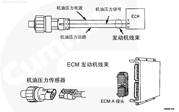 康明斯QSK78發(fā)動機機油壓力傳感器監(jiān)測機油壓力并通過康明斯QSK78發(fā)動機線束的觸針 24 將信息傳送至 CM500 ECM。